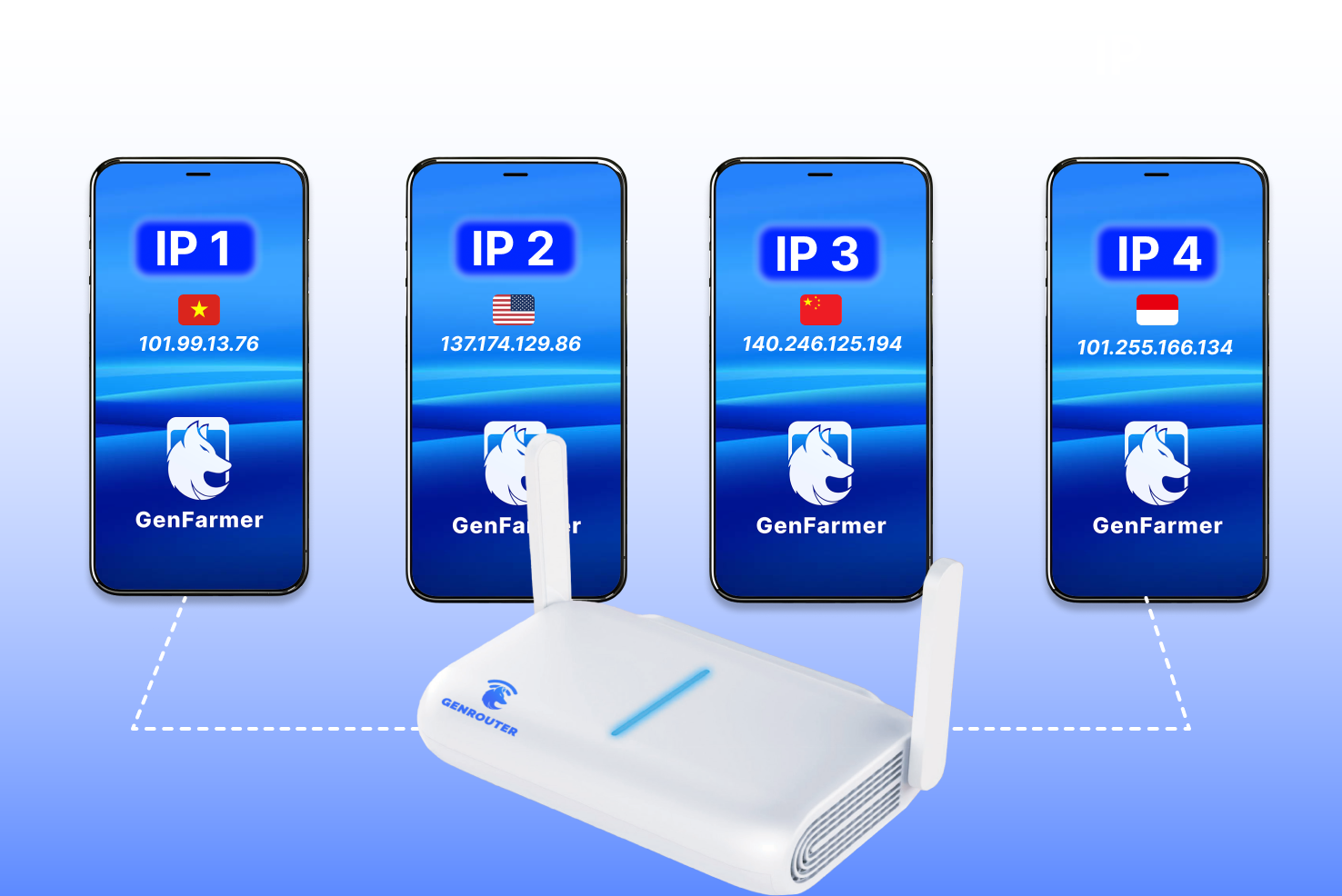 即使您擁有乾淨的身份資訊和強大的電話系統,但如果所有帳戶都使用同一個 IP 位址存取互聯網,您的努力也將付諸東流。平台會立即偵測到異常情況並大量封鎖您的帳戶。此時,GenRouter 就派上了用場,它將成為解決問題的關鍵。